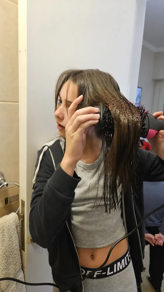 El exceso de calor reseca, quiebra y apaga tu pelo. Cambia hoy a un cepillo secador con tecnología protectora que alisa, da brillo y cuida tu cabello en un solo paso. ¡Tu melena lo va a agradecer!